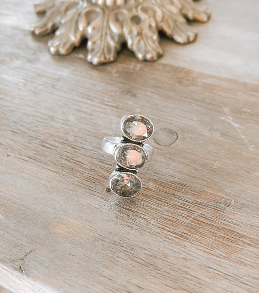 Wide Band Gold/Rose Gold Striped Ring with a Turquoise Stone