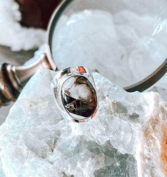 Buffalo Jasper & White Copper Turquoise Sterling Silver Ring