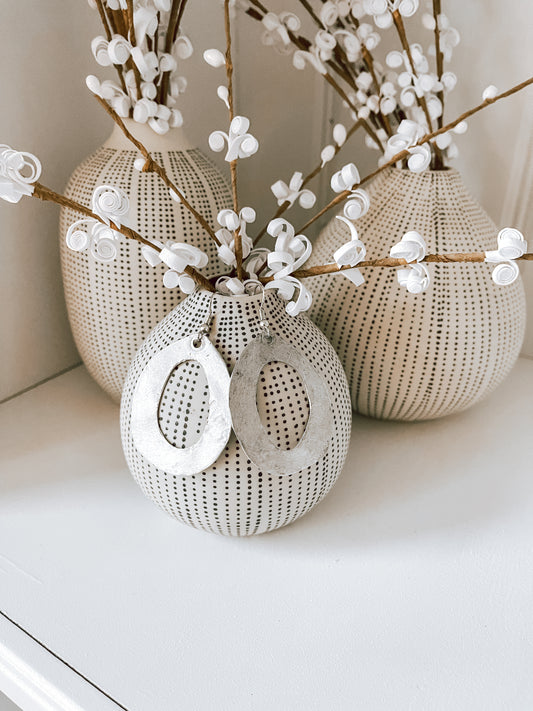 Vintage Silver Metal Oval Hole Earrings