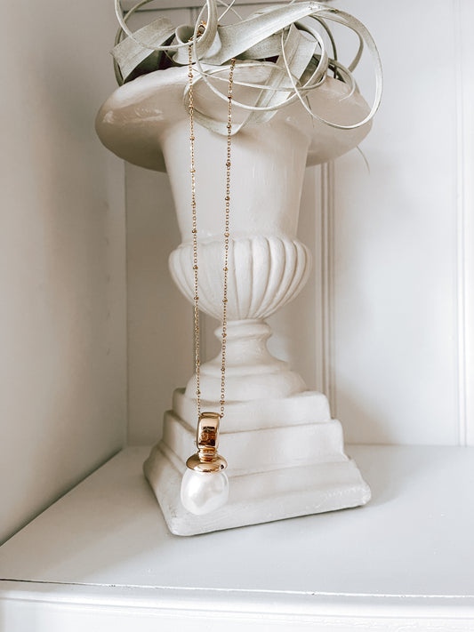 Vintage Looking Gold Beaded Necklace with Large Pearl