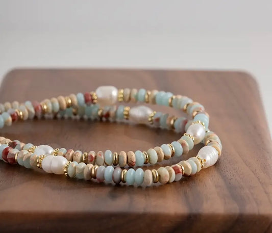 Pearl and Turquoise Stone Necklace with an accent of Gold