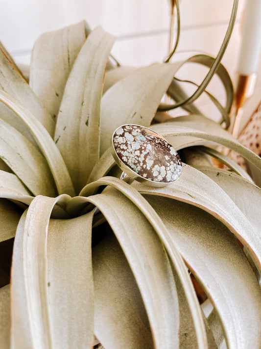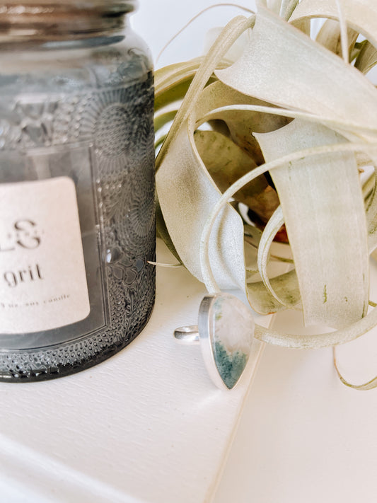 Natural Green Moss Agate Ring -Sterling Silver plated