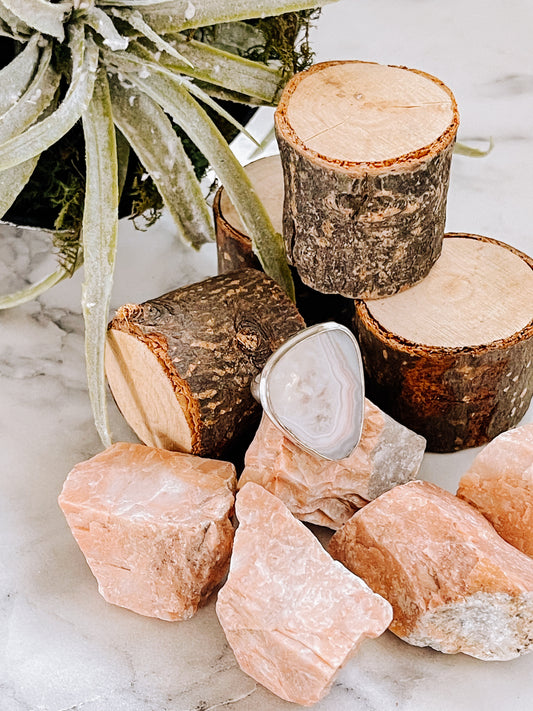 Natural Agate White Durzi Stone, Sterling Silver Plated Ring
