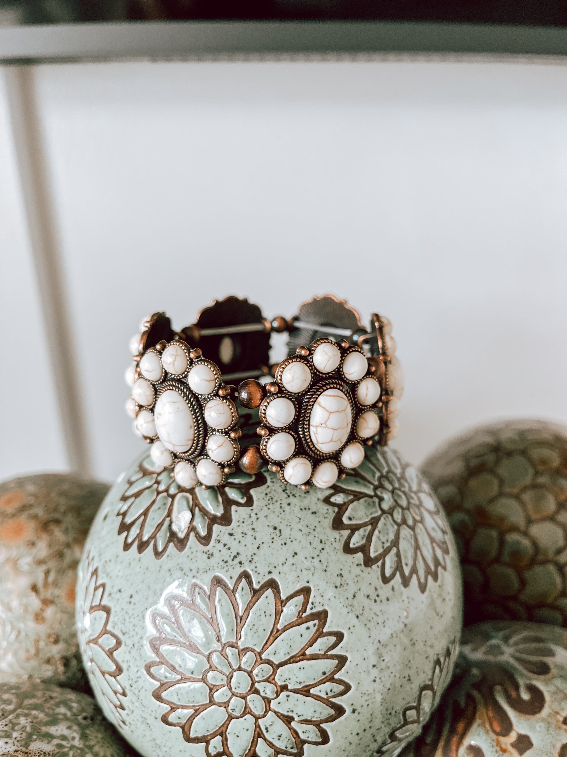 Copper White Turquoise beaded stretch bracelet