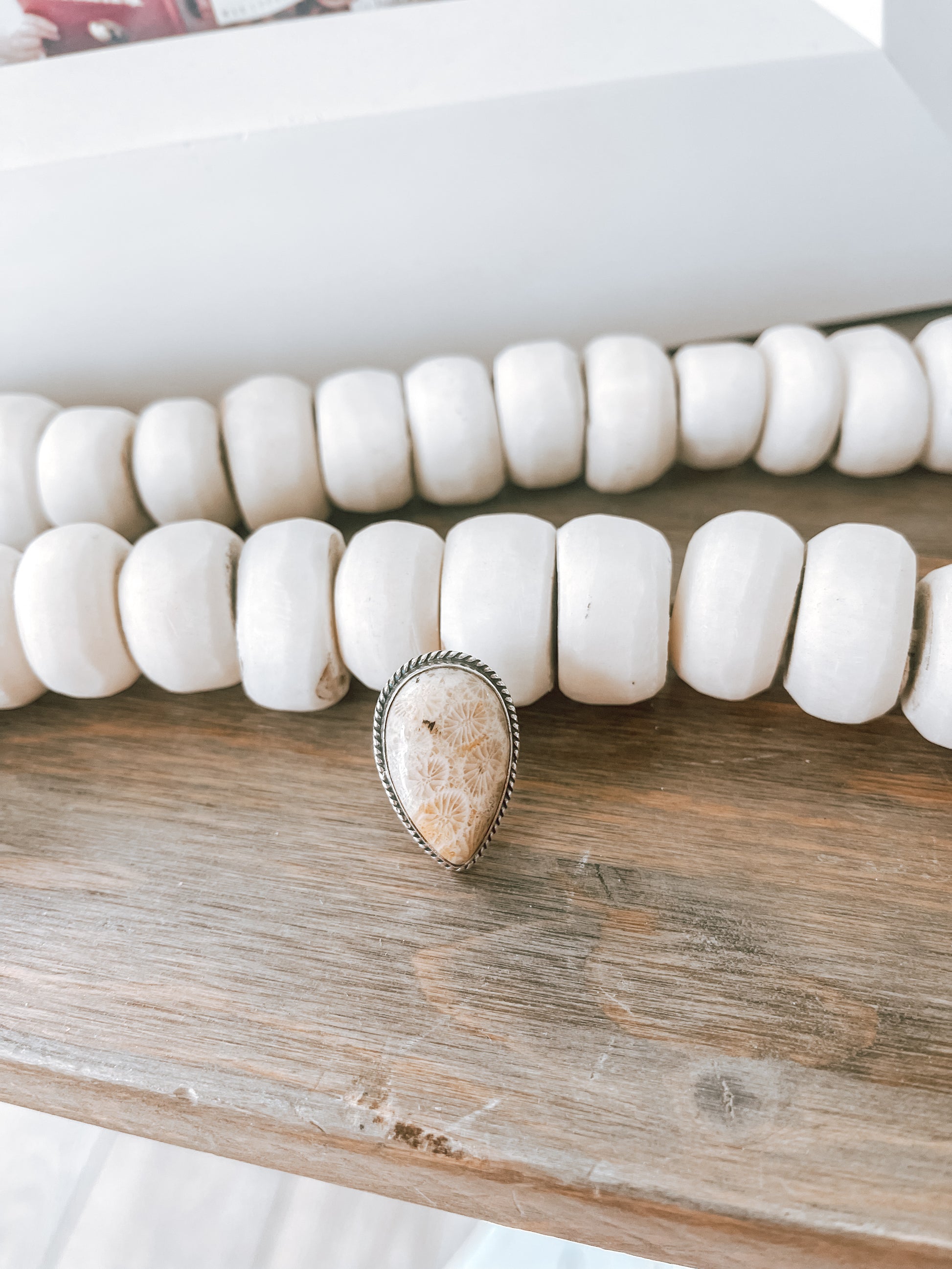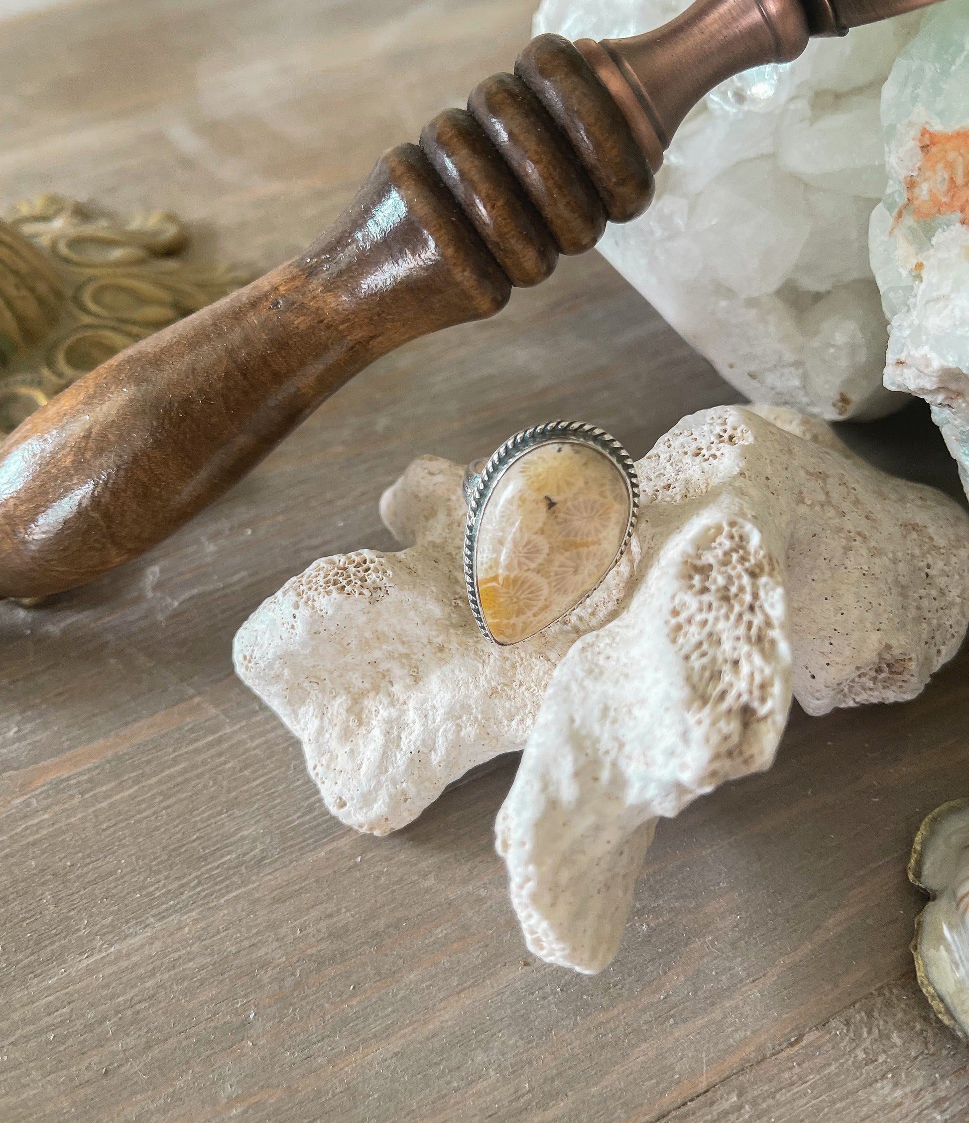 Coral Fossil Sterling Silver Ring