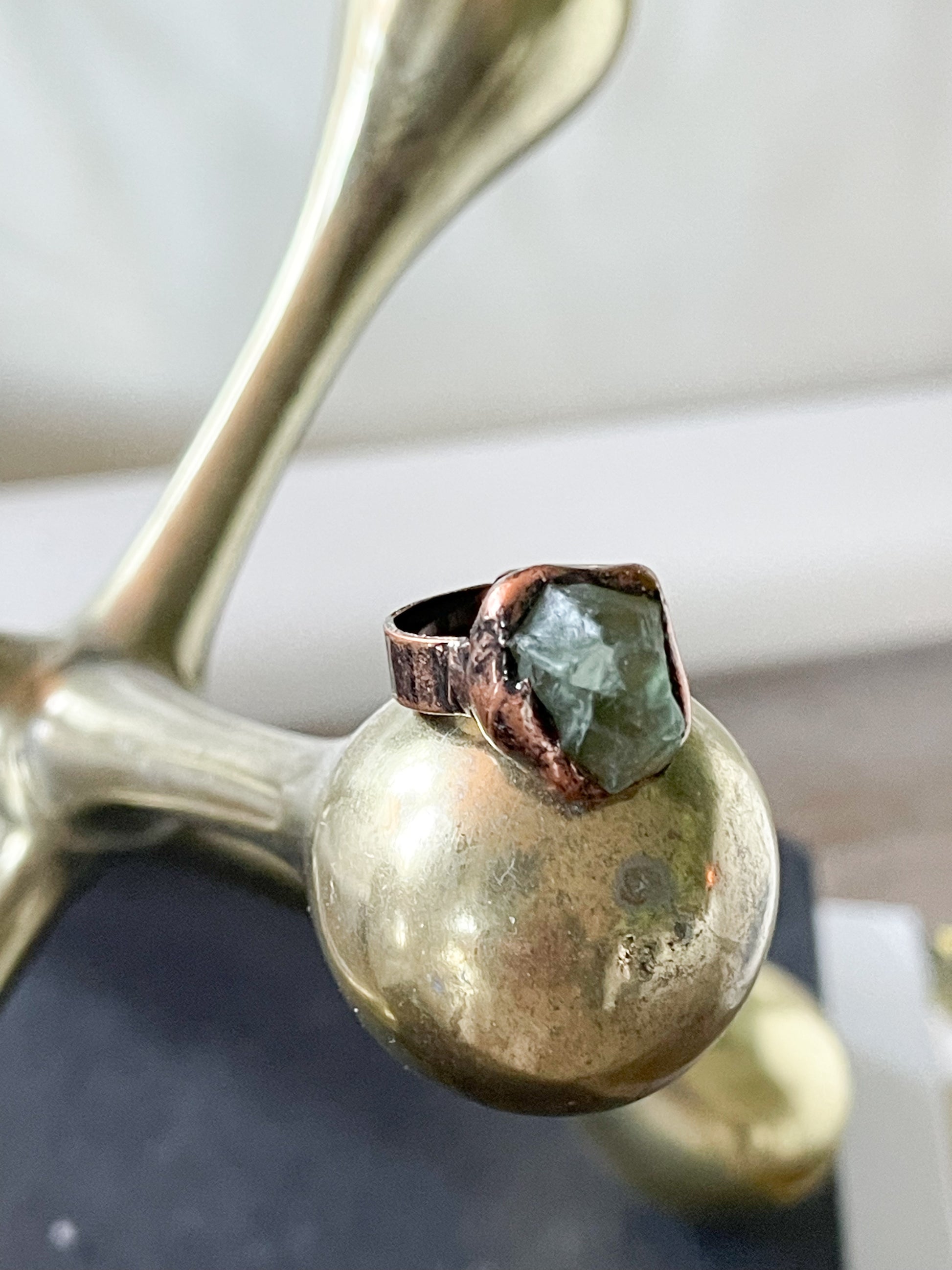 Fluorite Stone Bronze Adjustable Ring
