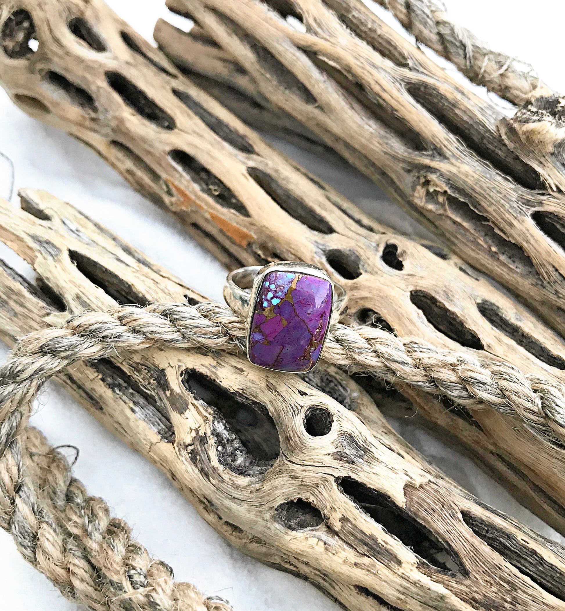 Rectangle Purple Turquoise Sterling Silver Ring