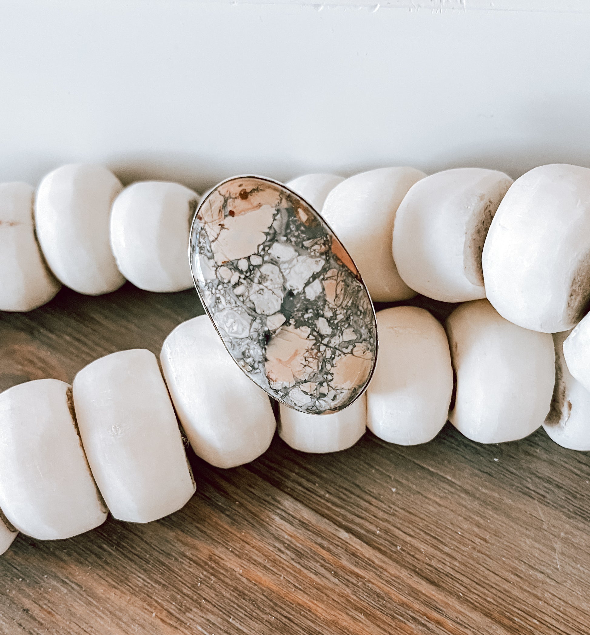 Crafted from genuine sterling silver, this ring showcases a striking jasper stone that brings natural earth tones and distinctive veining to your collection. Jasper is prized for its grounding properties and unique patterns, making each piece genuinely one-of-a-kind. The polished silver band provides a refined contrast to the stone's organic beauty, offering versatility for both everyday wear and special occasions. An understated yet elegant choice for those who appreciate quality materials and timeless design.