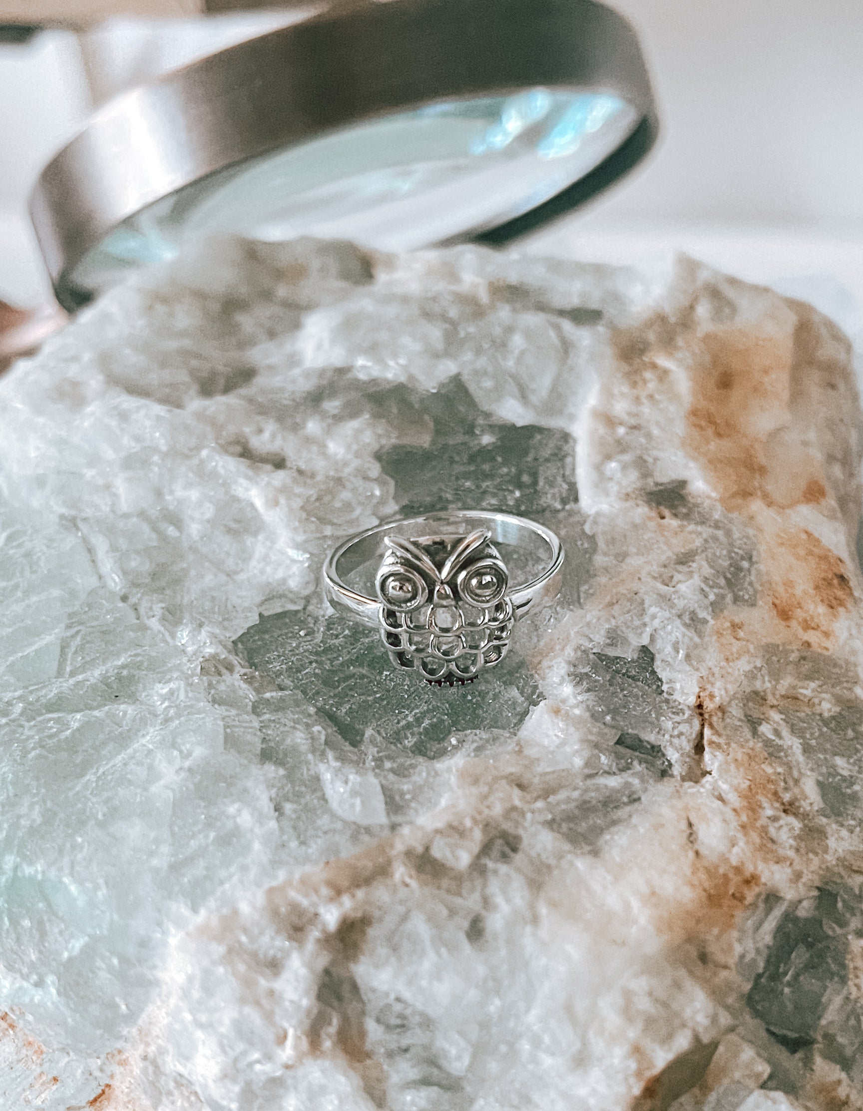 This sterling silver owl ring combines timeless symbolism with refined craftsmanship. The intricately detailed owl face captures wisdom and mystery, while the polished sterling silver band ensures durability and lasting shine. Perfect for those who appreciate nature-inspired jewelry with meaningful depth, this piece transitions seamlessly from everyday wear to special occasions. An ideal gift for owl enthusiasts or anyone seeking a distinctive accessory that tells a story.