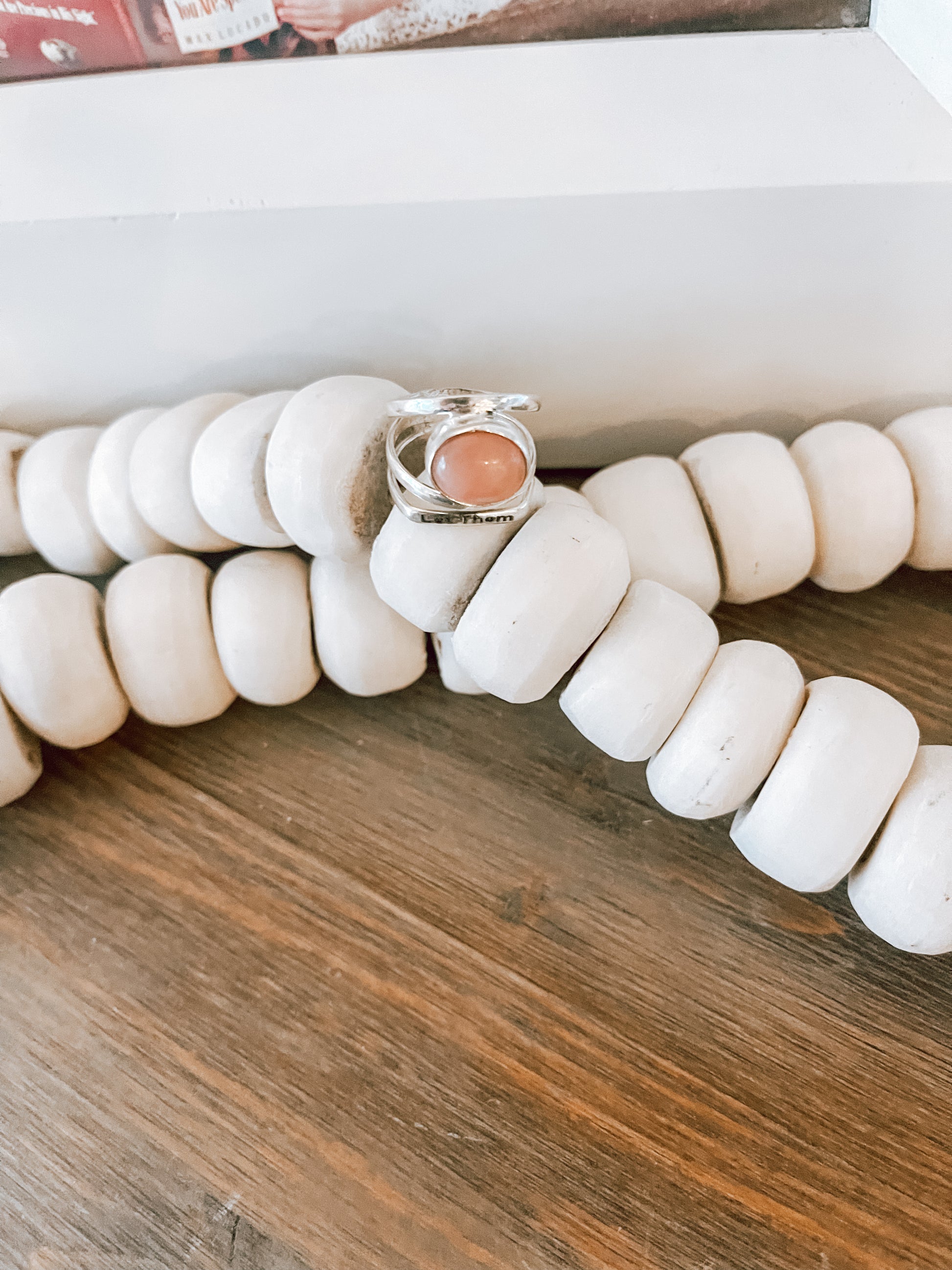 Sterling Silver Pink Opal Engraved "Let Them" Ring