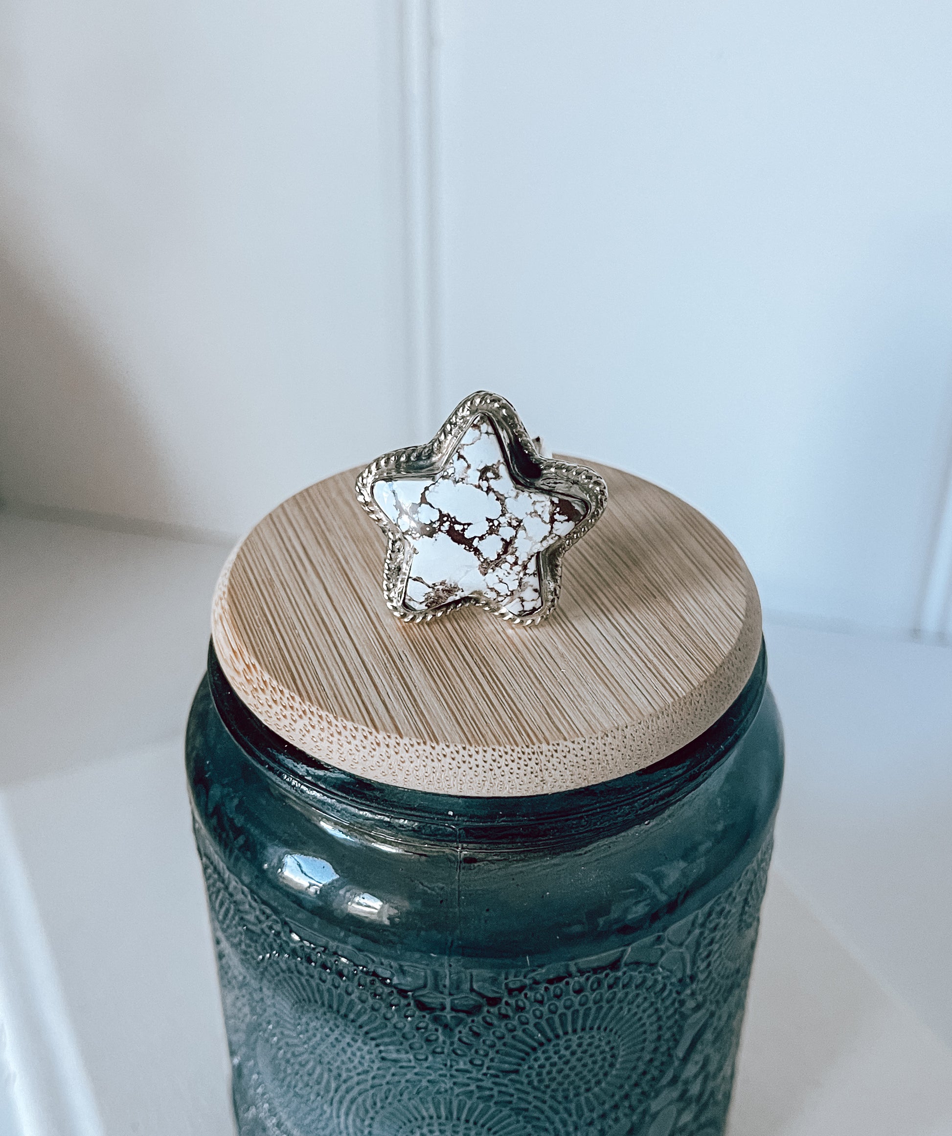 This sterling silver ring showcases a captivating Wild Horse Jasper stone set within an intricate star framework. The gemstone's distinctive earth-toned patterns—rich browns interwoven with cream and tan hues—ensure each ring is uniquely individual. Wild Horse Jasper is valued for its grounding properties and connection to natural stability. The star setting elevates the design with symbolic significance while the .925 sterling silver construction guarantees lasting quality and versatility for everyday wear or special occasions.