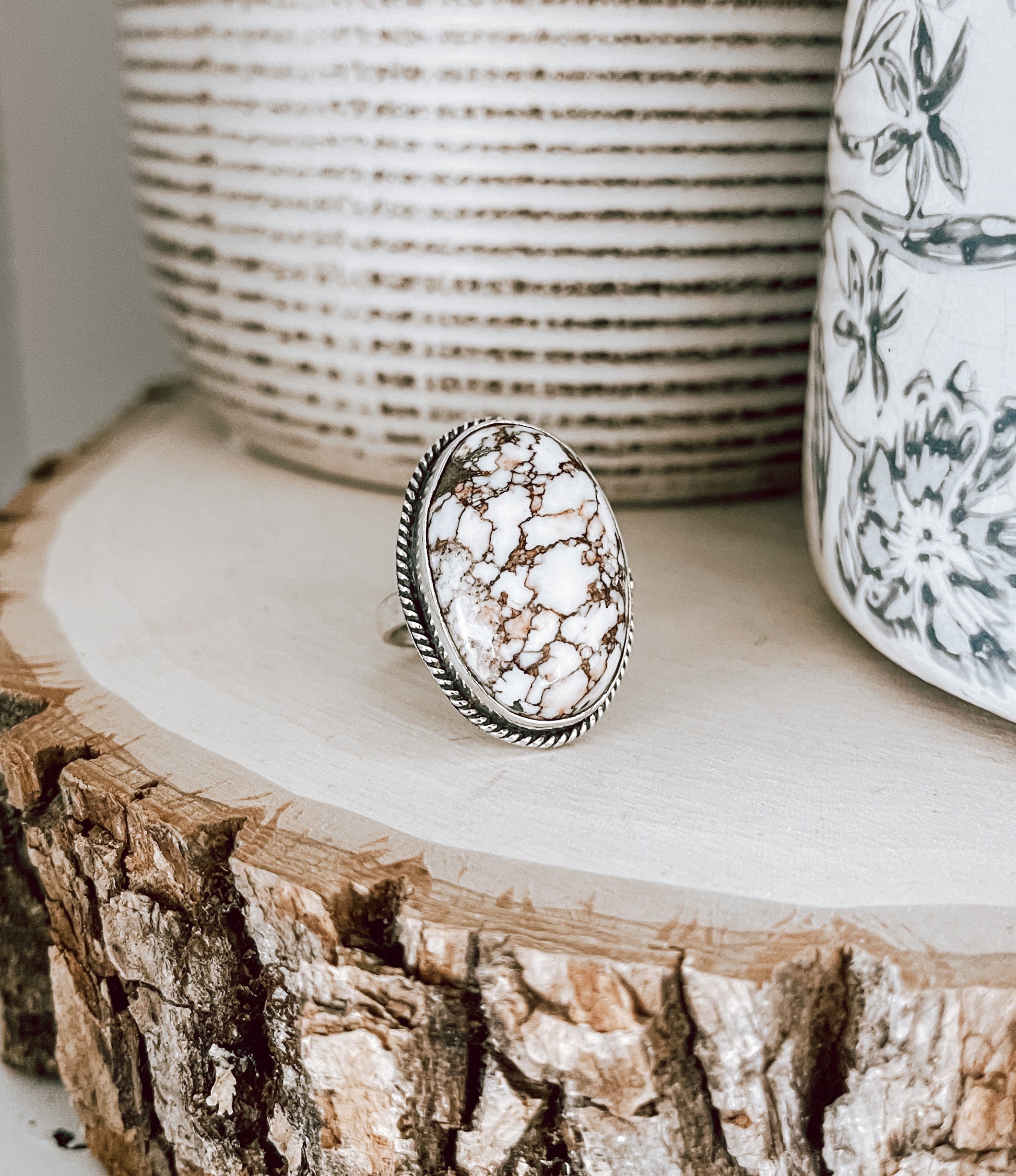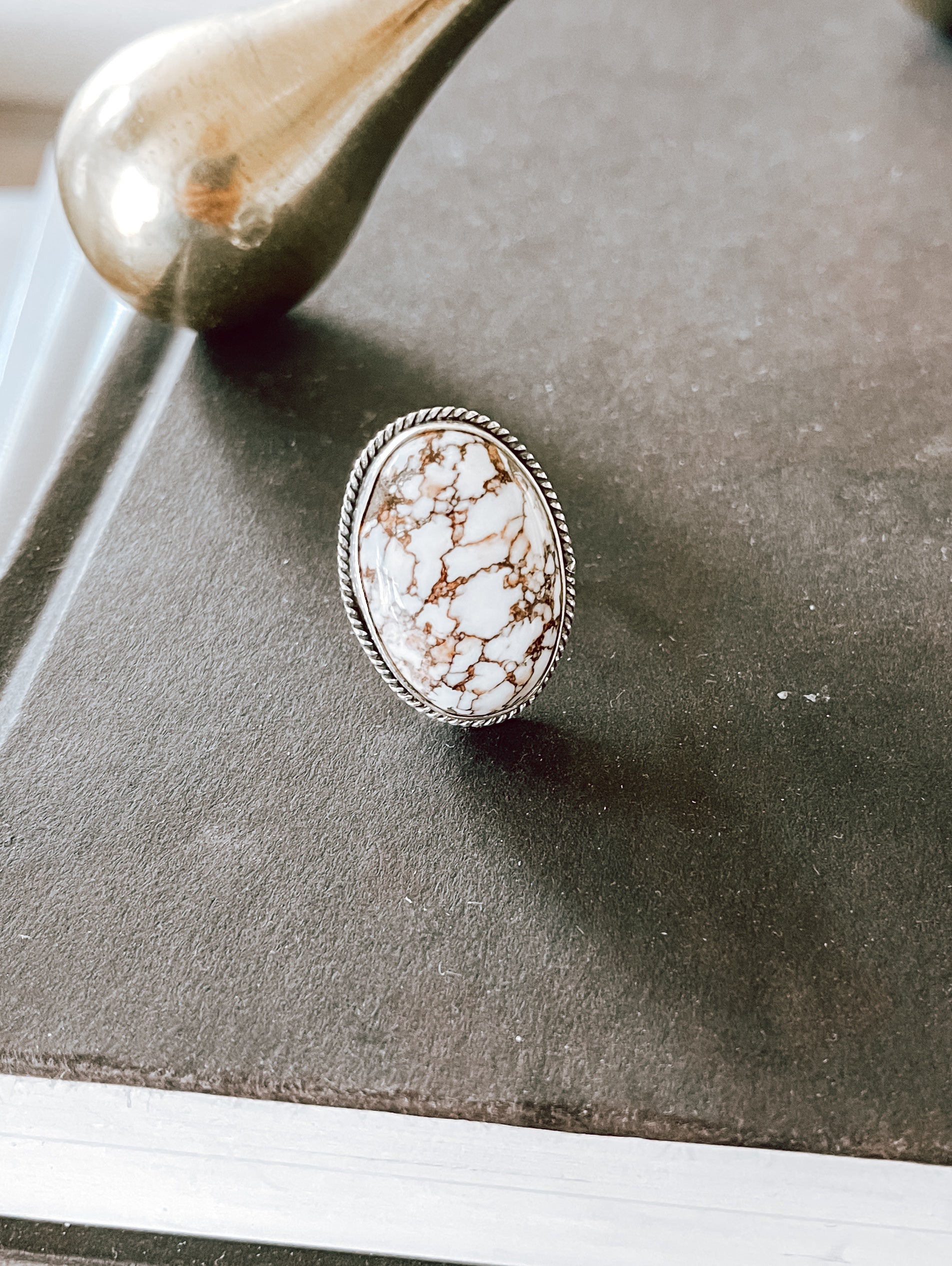 Crafted with precision, the Wild Horse Jasper Sterling Silver Ring showcases the unique patterns of genuine Wild Horse Jasper, set in high-quality sterling silver. This ring combines natural beauty with expert craftsmanship, offering durability and timeless style. Ideal for those who appreciate distinctive gemstones and refined jewelry, it adds a sophisticated touch to any collection.